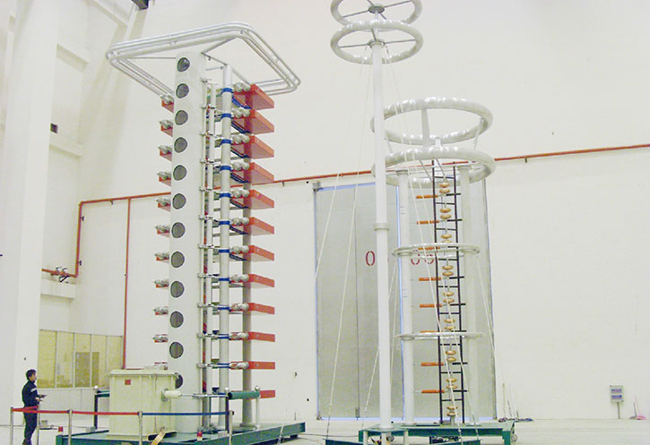 試驗系統(tǒng)組件:沖擊電壓試驗系統(tǒng)由沖擊電壓發(fā)生器本體、充電裝置、弱阻尼電容分壓器、截斷裝置、陡化裝置、控制測量裝置、調(diào)波元件、隔離阻抗等組成。